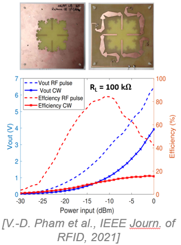 Énergie Électromagnétique : Transfert de puissance sans fil, diodes Schottky basse tension, optimisation de formes d’onde pour la conversion RF-DC.